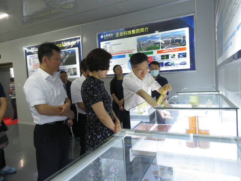 在調(diào)研過程中,吳副省長一行參觀了南昌正業(yè)生產(chǎn)車間,正業(yè)科技董事長徐地華全程陪同并介紹南昌正業(yè)的發(fā)展歷程、發(fā)展規(guī)劃、 產(chǎn)品及生產(chǎn)工藝,吳副省長仔細詢問電子材料的研發(fā)、應(yīng)用和市場開發(fā)等具體情況。