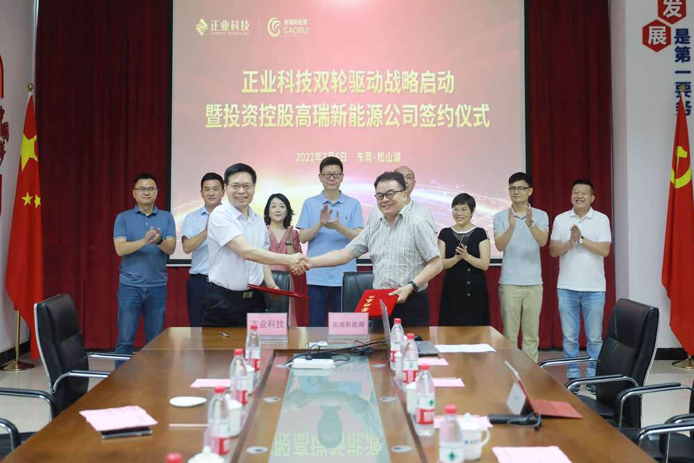 隨后舉行了正業科技投資控股深圳前海高瑞新能源有限公司(以下簡稱“高瑞新能源”)的簽約儀式,這是正業科技在成為國有控股企業后,雙輪驅動發展戰略的正式啟動。