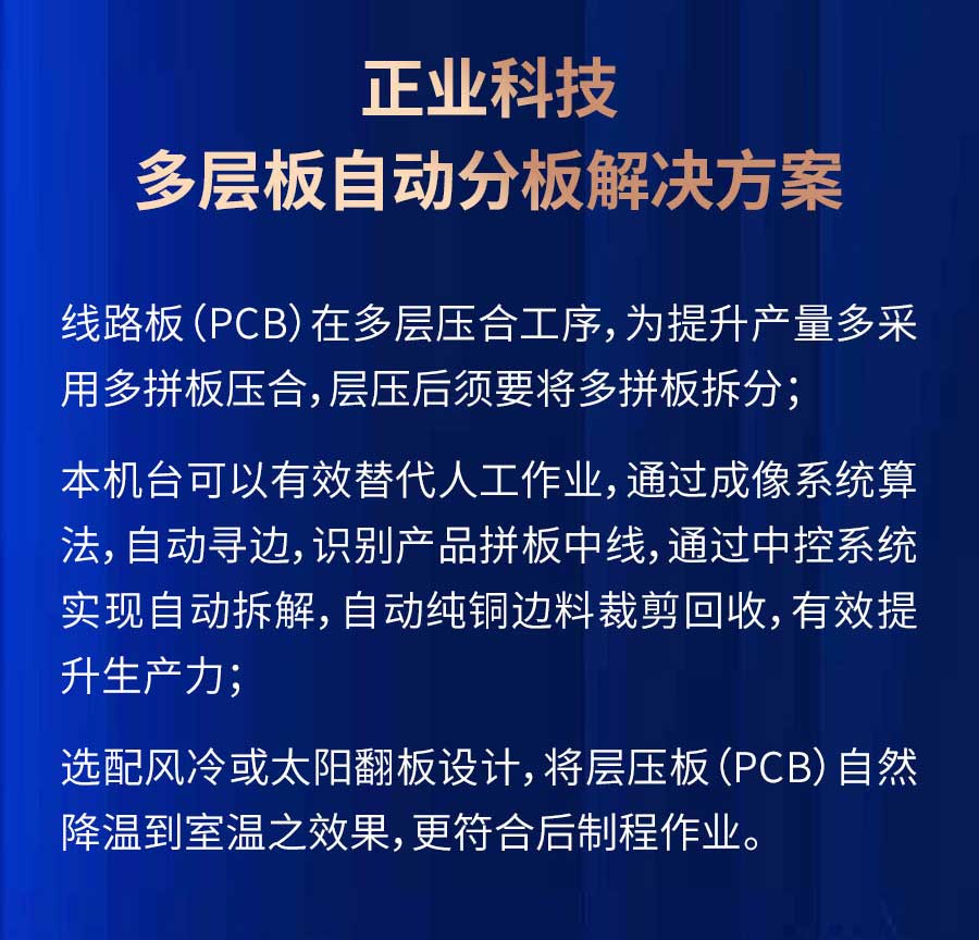 當前位置:首頁>產品中心>解決方案>PCB行業>正業科技解鎖PCB生產新模式,高效分板線助力產業升級